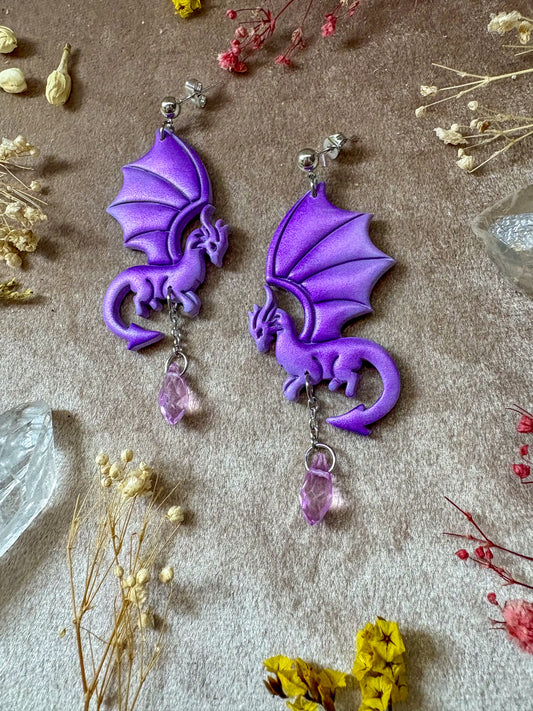 Purple Perch Dragon Earrings
