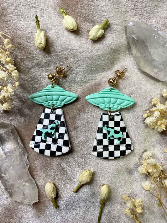 Are we alone in the universe? I can't answer that question, but here's some fun earrings depicting our otherworldly visitors.