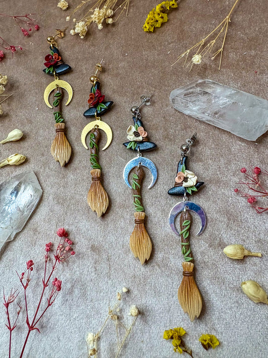 Witch's Broom and Hat Earrings
