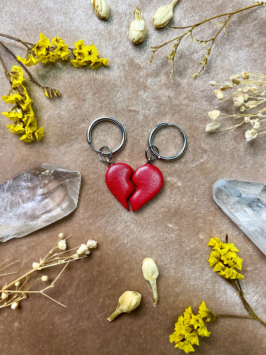 Red Broken Heart Charm (Silver)