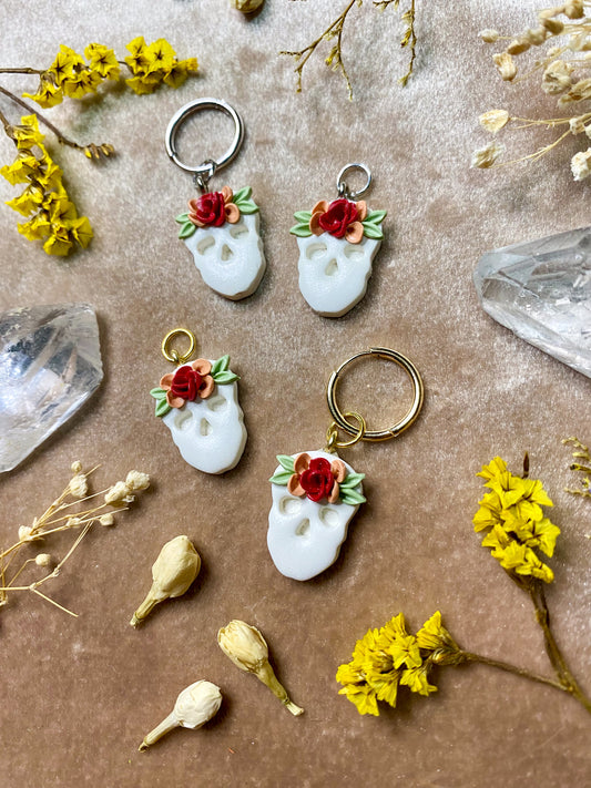 White Floral Skull Charm