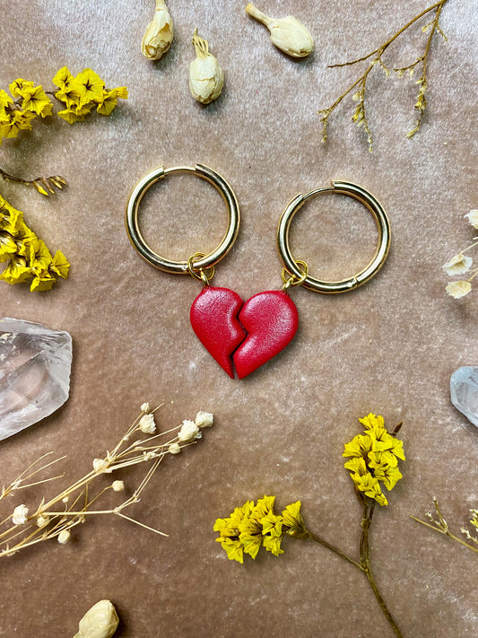 Red Broken Heart Charm (Gold)