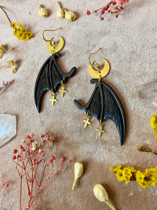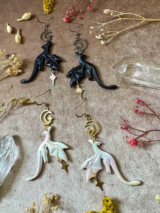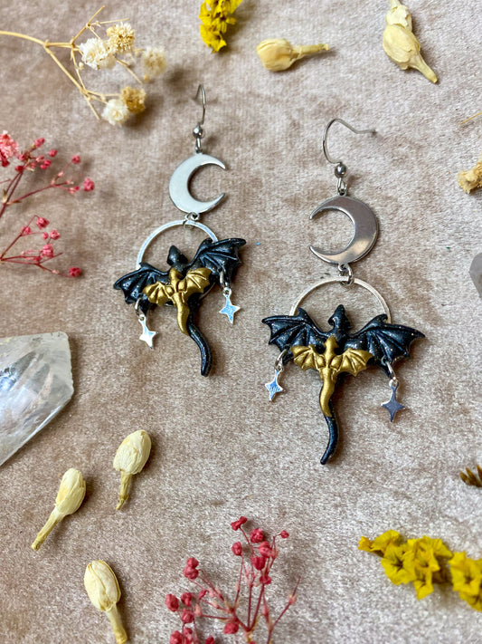 Dragon Rider Black and Gold Mini Dragon Earrings