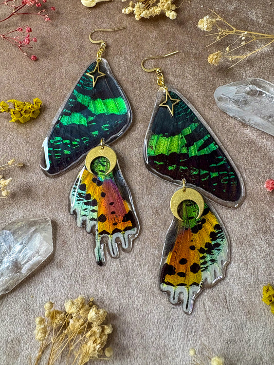 Double Madagascan Sunset Moth Earrings