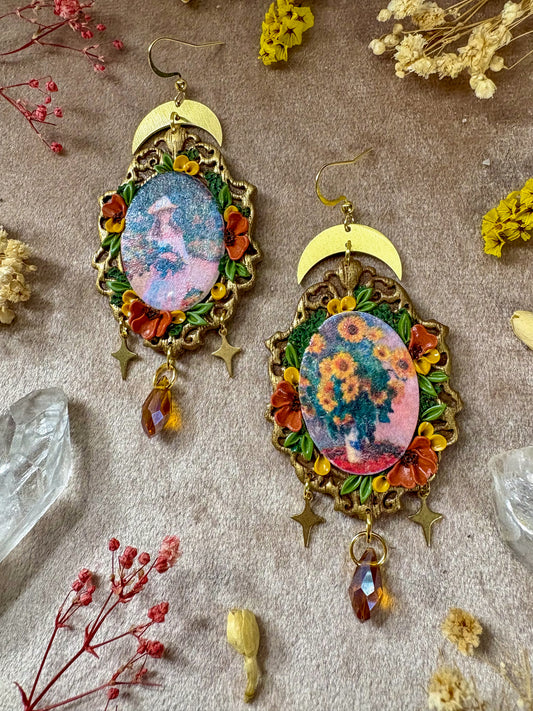 Monet's "Bouquet of Sunflowers" and "Girl in the Garden at Giverny" Painting Earrings