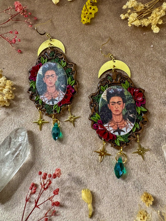 Frida's "Self Portrait with Thorn Necklace" Painting Earrings