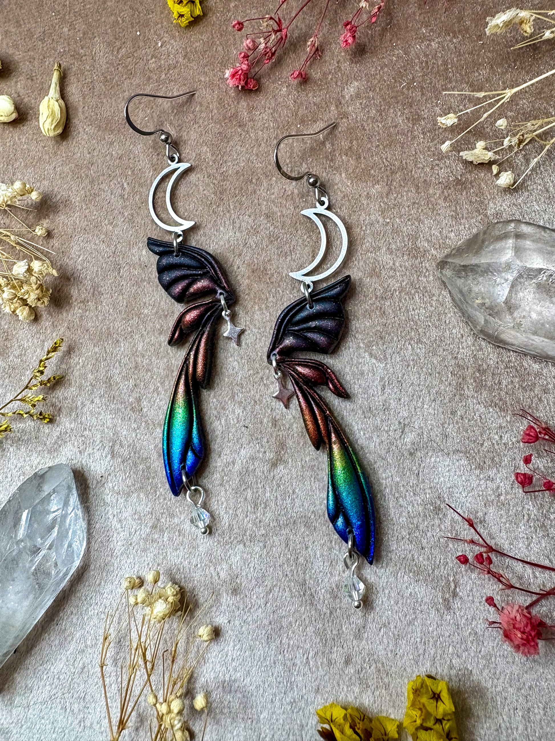 Gemstone Fairy Wing Earrings - Rainbow Aura