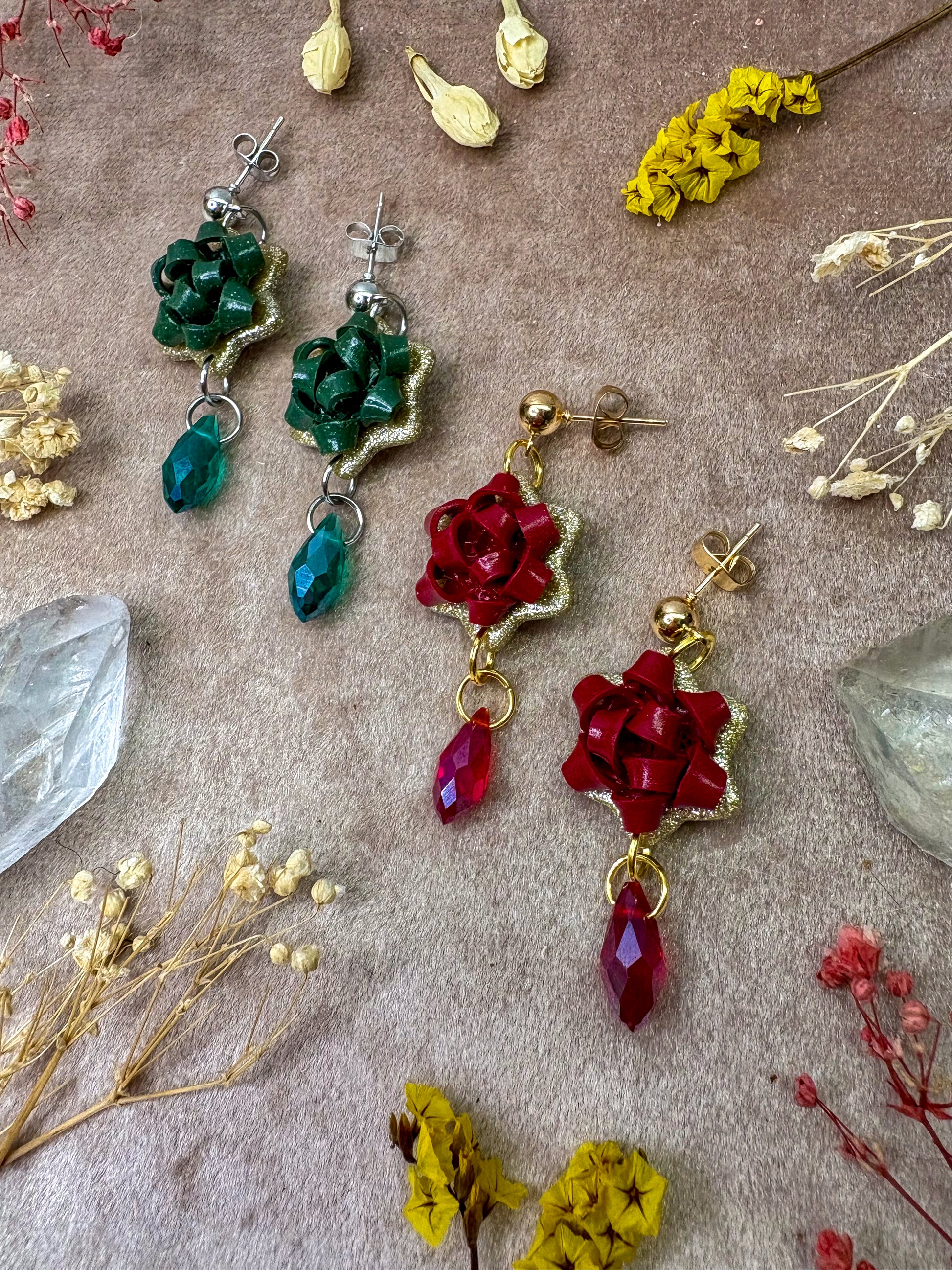 Earrings are all handmade out of polymer clay and/or resin. Hooks, posts, and hoops are either nickel-free stainless steel or 18k gold-plated making them safe for sensitive ears.