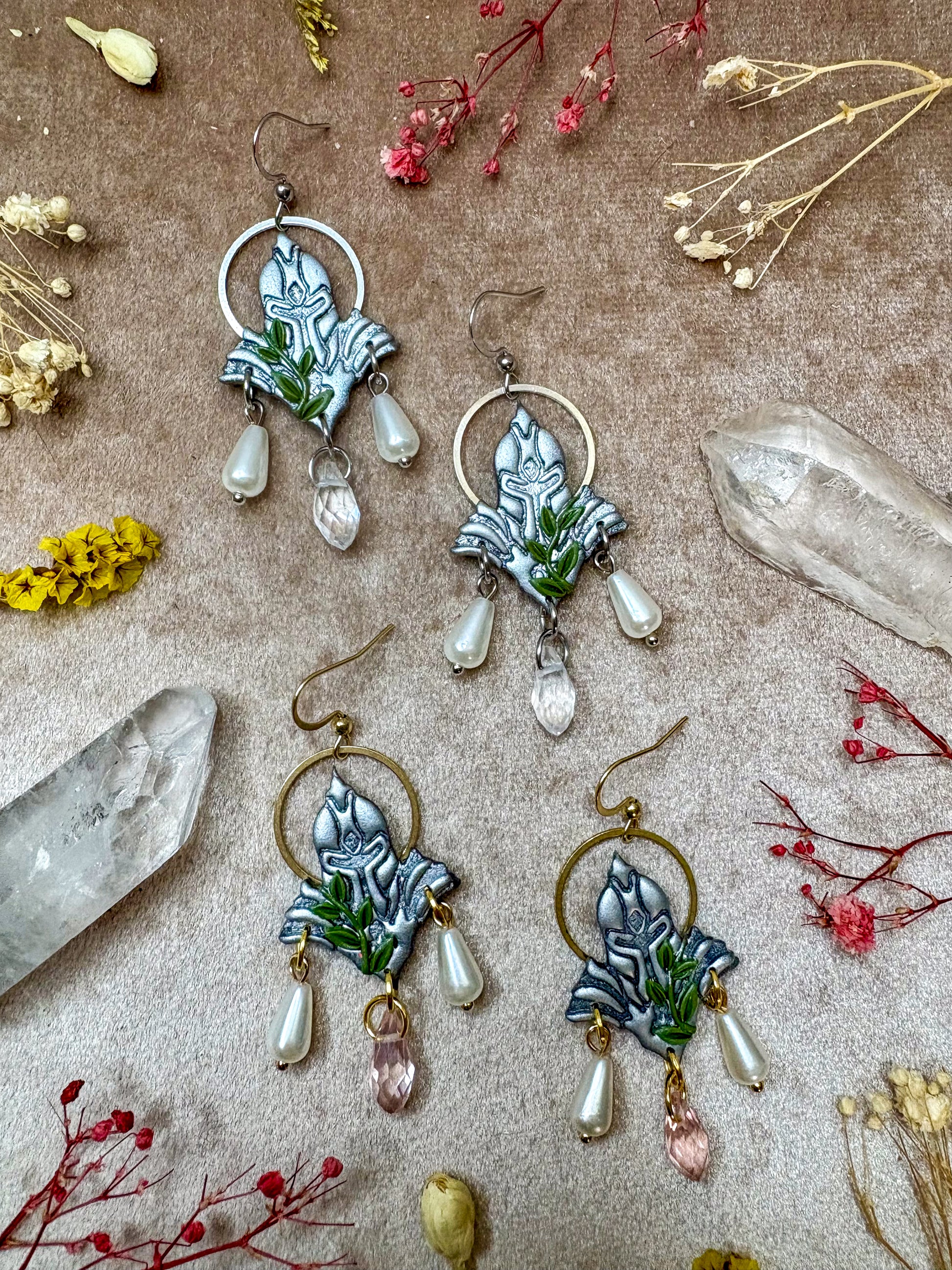 Earrings are all handmade out of polymer clay and/or resin. Hooks, posts, and hoops are either nickel-free stainless steel or 18k gold-plated making them safe for sensitive ears.